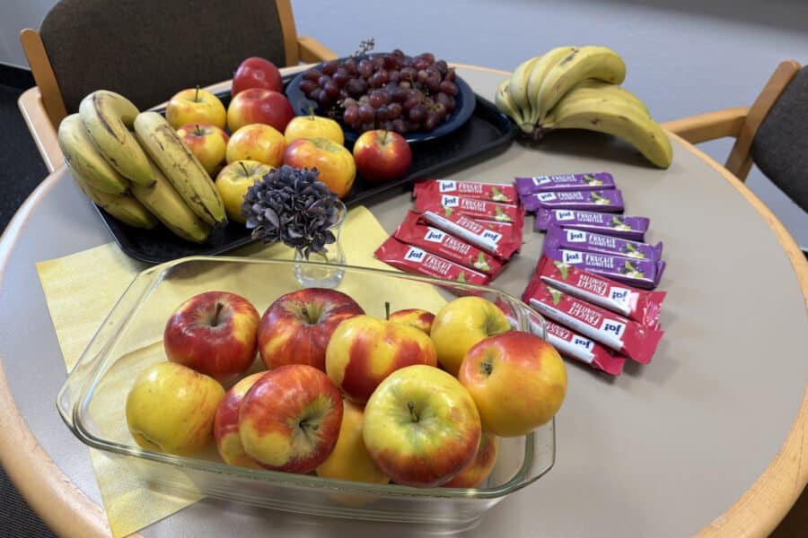 In unserer Mensa wird täglich frisch gekocht. Zusätzlich zu einem vegetarischen Menü und einem Menü mit Fleisch gibt es ein Nudelgerichte und eine Salatbar mit frischen Salaten.