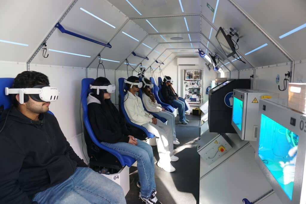 Im Spacebuzz gingen an den beiden Tagen über 160 Kinder, Jugendliche und Erwachsene auf eine virtuelle Reise ins All – bis zum Mond und zurück. Nach einer Einweisung durch die Mission Specialists in den blauen DLR-Overalls durften bis zu neun Teilnehmerinnen und Teilnehmer das Innere des Spacebuzz betreten und wurden auf dem Bildschirm von den Deutschen Reserveastronautinnen Amelie Schoenenwald oder Nicola Winter begrüßt.